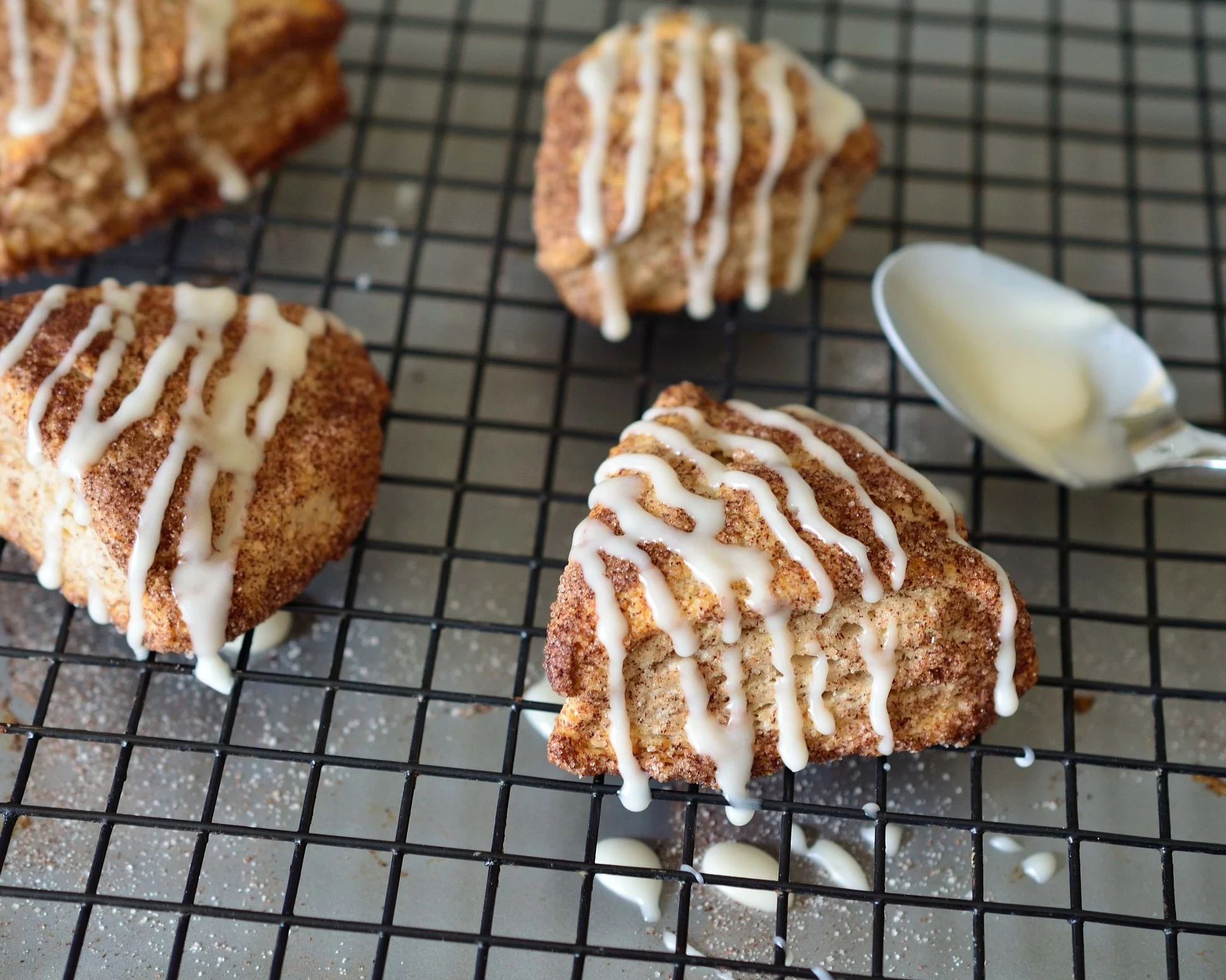 9. Stir together the glaze ingredients, then top the scones with the glaze. Serve warm.